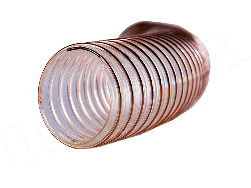 PU ducting adopts high quality PU as raw material which has excellent abrasion resistant. With the support of steel wire, it has a strong structure for material handling. It’s ideal for the suction and delivery work for abrasive materials like sand, grit and many others. Orientflex can insert copper wire inside the polyurethane duting to conduct the static during the material handling work.