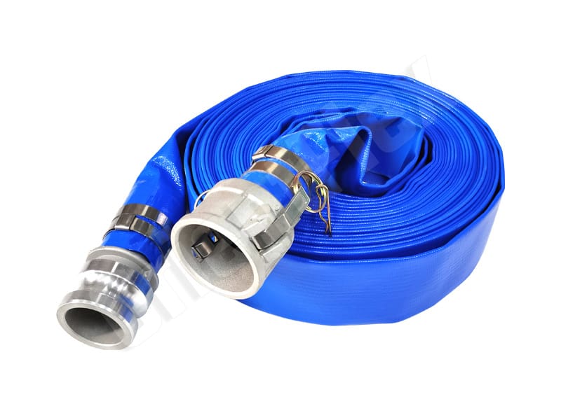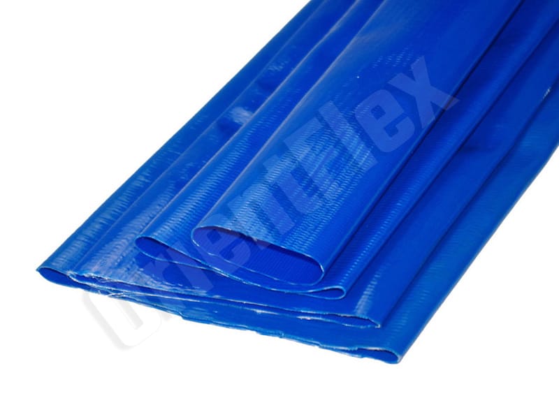 PVC Layflat Hose is commonly referred to as lay flat hose, water discharge hose, delivery hose, pump hose and flat hose. While blue layflat hose is perfect for use with water, light chemicals and other fluids in industry, agriculture, irrigation, mining and construction.